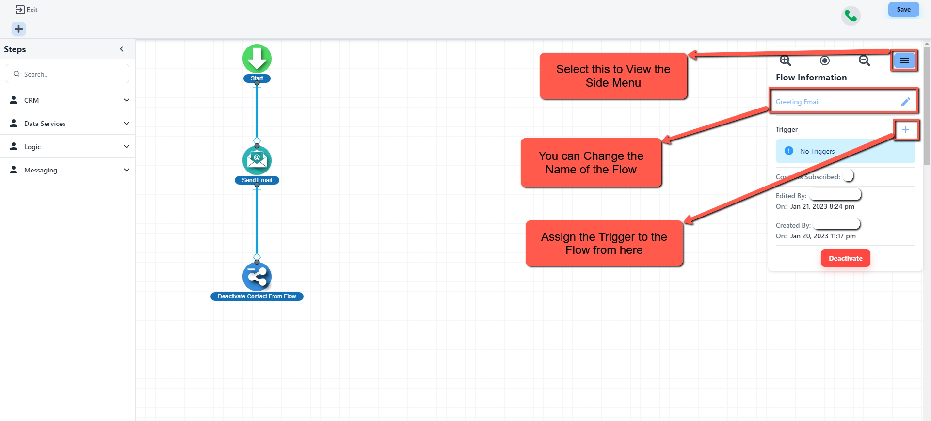Trigger is an essential part of the Automation Flow which drives the Flow. Trigger Menu is where you can edit the name of the Flow and Add a Trigger.