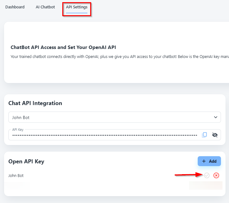 Once you have shared the API key, the sub-account will be able to access and use it for chatbot-related tasks and features. Remember to manage your API keys carefully to maintain security and control over your chatbot's resources.