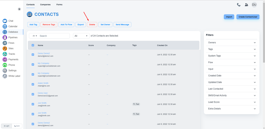 Please, navigate to the ‘Database’ on the left side menu. You will get the list of all contacts