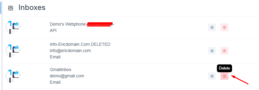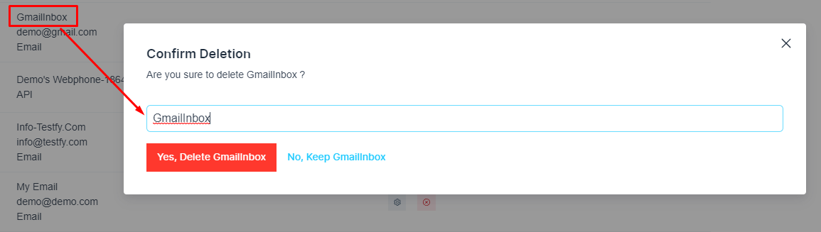 Type the inbox name to activate the delete button