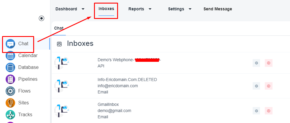 Please, navigate the ‘Chat’ on the left menu bar. Once the page is loaded, please click on the ‘inbox’ menu on the top menu bar.