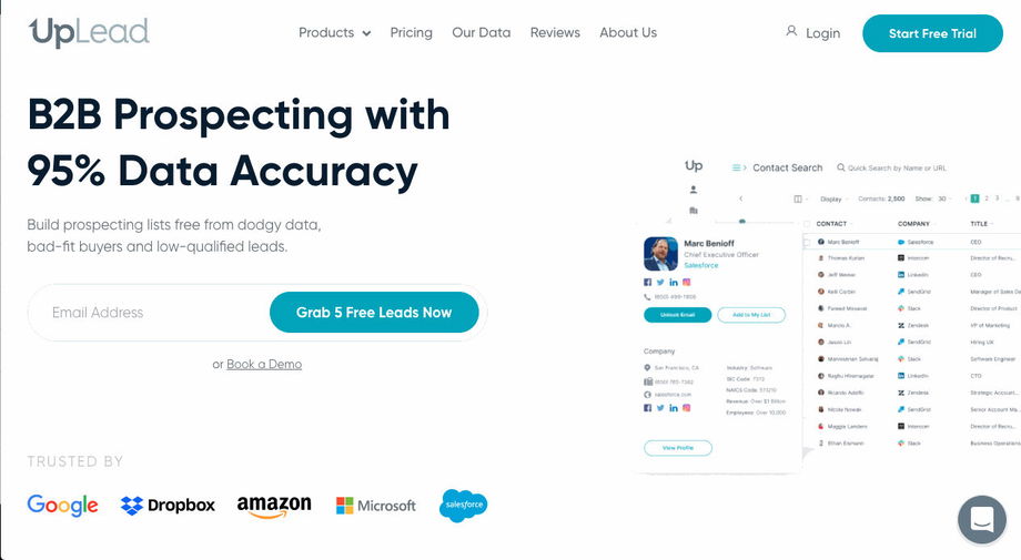UpLead is a powerful prospecting tool that allows you to grab free leads with extremely accurate information.