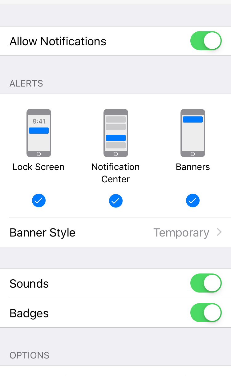 If you're using an iOS device, go to Settings > Notifications > Find the app > Turn on 'Allow Notifications.'